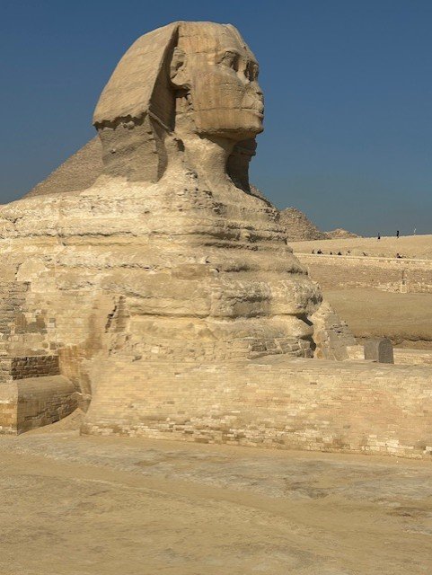 A Esfinge do Egito configura-se como criatura mitológica com corpo de leão e cabeça humana, em geral, de faraó, simbolizando força e poder, guardiã de templos e pirâmides. A Grande Esfinge de Gizé é a mais famosa, situada no Planalto de Gizé, considerada como a maior estátua monolítica do mundo, isto é, esculpida numa só rocha, com cerca de 20 metros de altura e 73 metros de comprimento, para servir como guardiã e símbolo de sabedoria, combinando força do leão x inteligência humana.