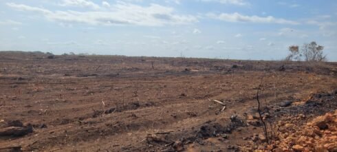 Desmatamento gigantesco, com área de 492 hectares, avança rapidamente sobre floresta próxima à Chapada das Contendas e ao povoado Malhada Grande, a aproximadamente 65 km da sede do município de Oeiras (PI). De acordo com moradores da região, o lugar do desmatamento será usado para a monocultura da soja.